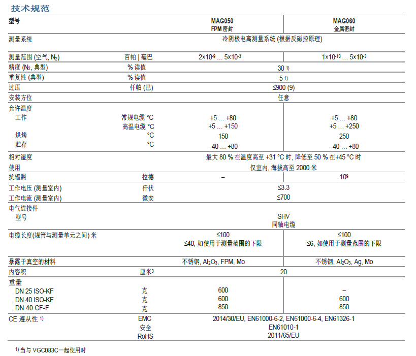 MAG050 測量低至 2 × 10-9 百帕 | 毫巴, MAG060 低至 1 × 10-10 百帕 | 毫巴.